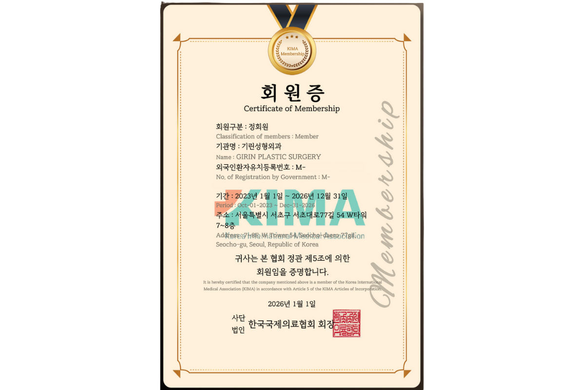 GIRIN Plastic Surgery is an official member hospital of KIMA,